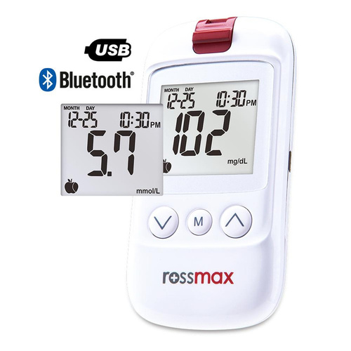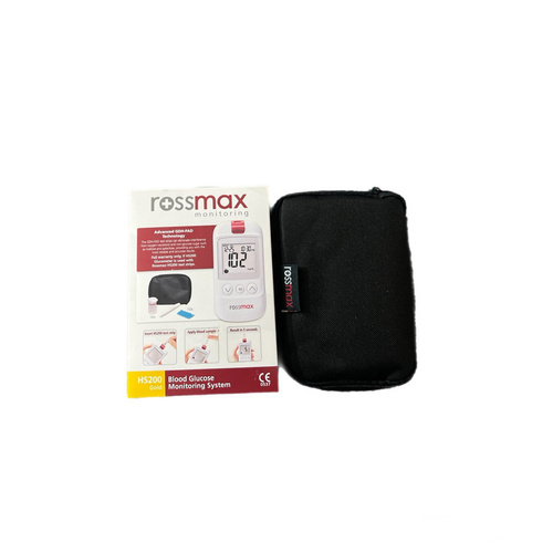 دستگاه تست قند خون مدل HS200 ساخت کشور سوئیس می باشد. این دستگاه برای استفاده آسان، سریع و دقیق طراحی شده است. در فن آوری GDH_FAD می توان از خون مویرگی (سر انگشتان دست و مناطق دیگر)، وریدی و شریانی استفاده کرد بدون اینکه باعث ایجاد خطا در نتایج تست قند خون شود. آنزیم گلوکز دهیدروژناز (GDH_FAD) با اکسیژن تداخلی ندارد و دارای قابلیت جدا سازی گلوکز از قند های مشابه مانند مالتوز و گالاکتوز می باشد بنابراین افرادی به دلیل انجام دیالیز در خون آن ها مالتوز وجود دارد می توانند از نوار هایی که دارای این آنزیم هستند استفاده نمایند. برای تست قند خون به وسیله دستگاه رزمکس مدل hs200 نیازی به حجم زیاد خون نیست و می توانید با مقدار کم نتیجه را مشاهده کنید. قابلیت ذخیره اطلاعات تست های انجام شده(تا 500 تست) به کاربر این امکان را می دهد تا بررسی جامع و دقیقی از روند کاهشی و افزایشی قند خون خود را در دسترس داشته باشد. ویژگی های ROSSMAX مدل HS 200 شامل کد گذاری خودکار و فن آوری GDH_FAD و قابلیت ذخیره 500 تست و اندازه گیری سریع در 5 ثانیه و اندازه گیری با حجم کم نمونه خون است.